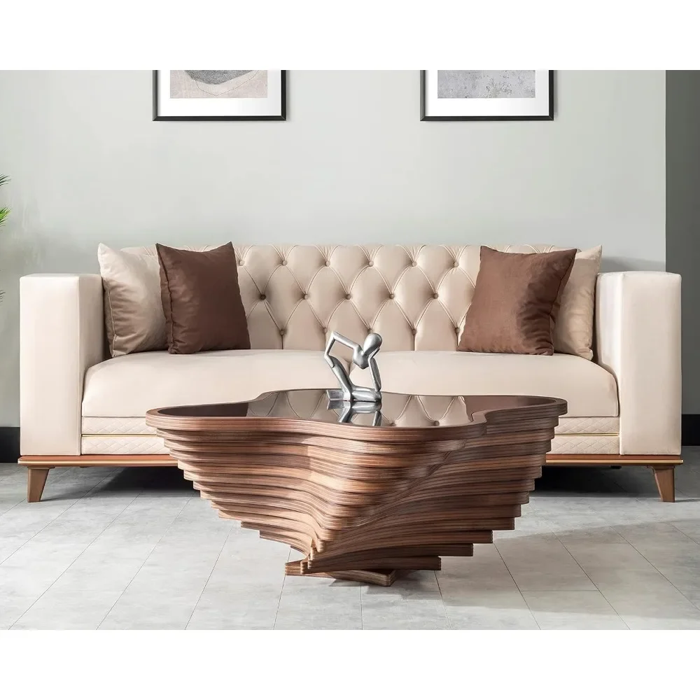 Elegant and Unique Design: This coffee table boasts a unique and elegant design, perfect for adding a touch of sophistication to any living room. Made from high-quality materials, it combines style and durability for a timeless piece.
